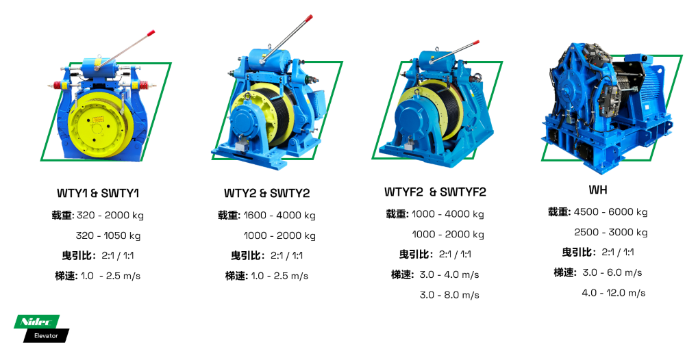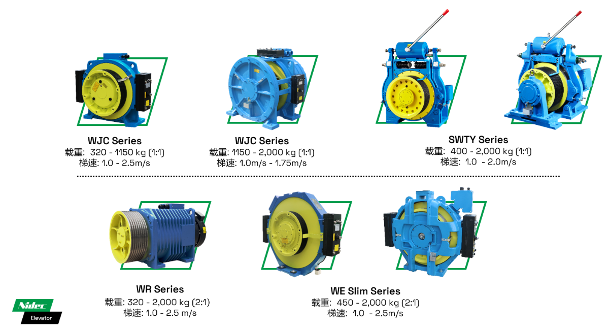 • Dengan kapasiti beban maksimum sehingga 5500KG dan kelajuan lif maksimum 3m/s, skim nisbah daya tarikan yang berbeza meliputi keperluan beban antara 2500KG hingga 5500KG.
